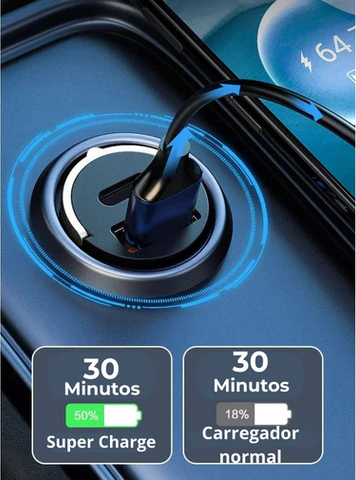 Com o SuperCharge você carrega o seu celular em minutos, sem ter um carregador gigante acabando com a beleza do seu carro!